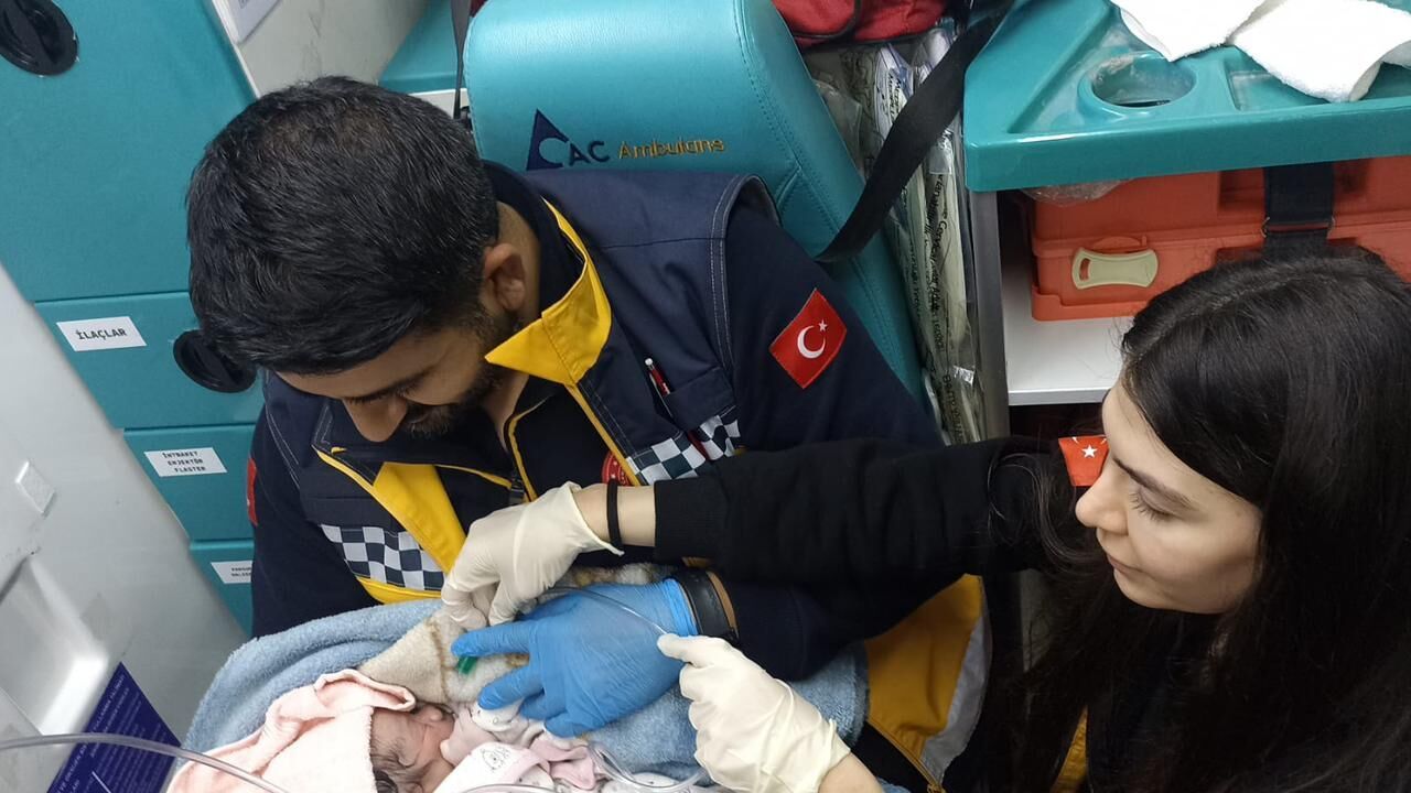 Durumun aciliyeti nedeniyle anne adayı vakit kaybetmeden ambulansa alındı. Ancak doğumun hızla ilerlemesi üzerine ekipler hastaneye ulaşamadan ambulansta müdahaleye başladı. Doğum setini hazırlayan ekip, gerekli tüm tıbbi işlemleri kısa sürede tamamladı.