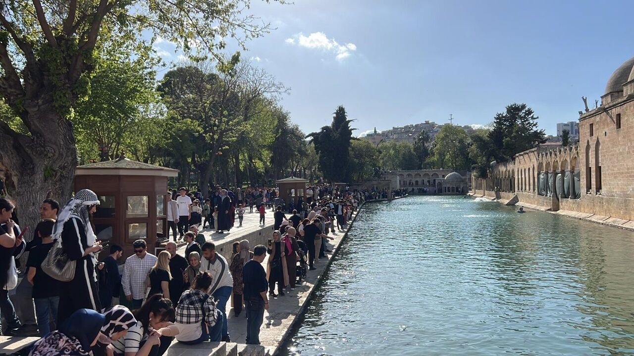 Şanlıurfa’da 23 Nisan Ulusal Egemenlik ve Çocuk Bayramı’nın resmi tatil olması ve toplu taşımanın ücretsiz hale getirilmesiyle birlikte vatandaşlar, şehrin en önemli simgelerinden biri olan Balıklıgöl’e akın etti