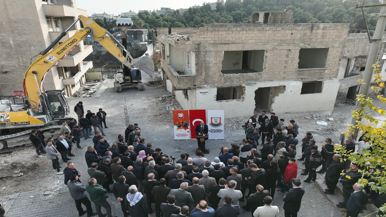 Başkan Gülpınar, daha sonra projenin hayata geçirileceği alanda incelemelerde bulundu. İncelemelerin ardından kepçe operatörünün koltuğuna geçen Başkan Gülpınar, bina yıkımları için ilk kepçeyi vurarak çalışmaları başlattı.