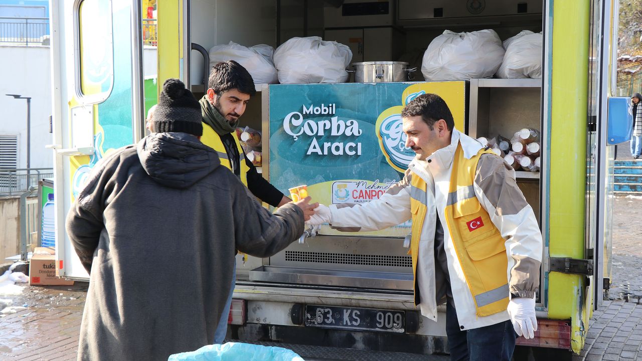 İlçe genelinde kar küreme ve tuzlama çalışmalarının yanı sıra ihtiyaç sahibi ailelere sıcak yemek ulaştırıldı, kentin çeşitli noktalarında ise çorba ikramı yapıldı.