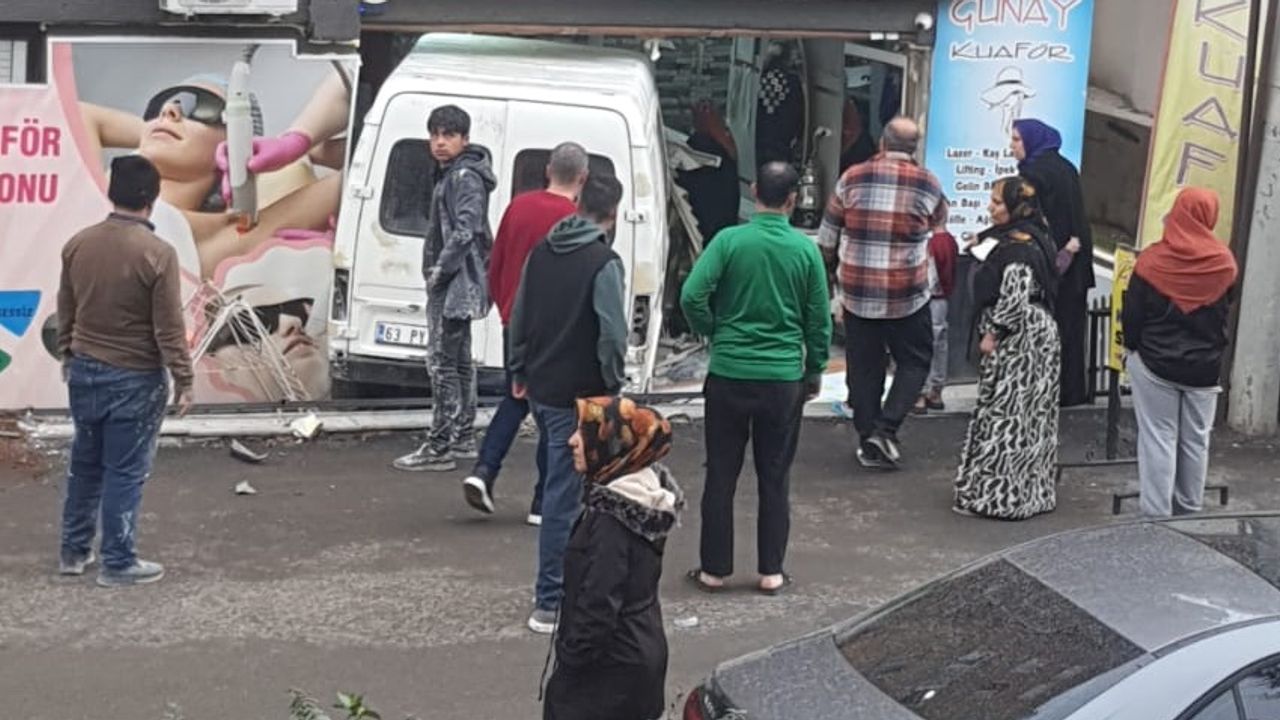 Olay Şanlıurfa'nın Haliliye ilçesine bağlı Veysel Karani mahallesi 480. sokakta meydana geldi. İddiaya göre bir minibüs sürücüsü fren yerine yanlışlıkla gaza basınca bayan kuaförüne daldı.