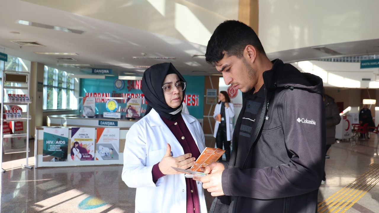 Hastane girişinde kurulan bilgilendirme standında vatandaşlara HIV/AIDS konusunda farkındalık sağlandı. Etkinliğe Başhekim Yardımcısı Doç. Dr. Müslüm Toptan, Başhemşire ve Eğitim Hemşireleri de katılım sağladı.