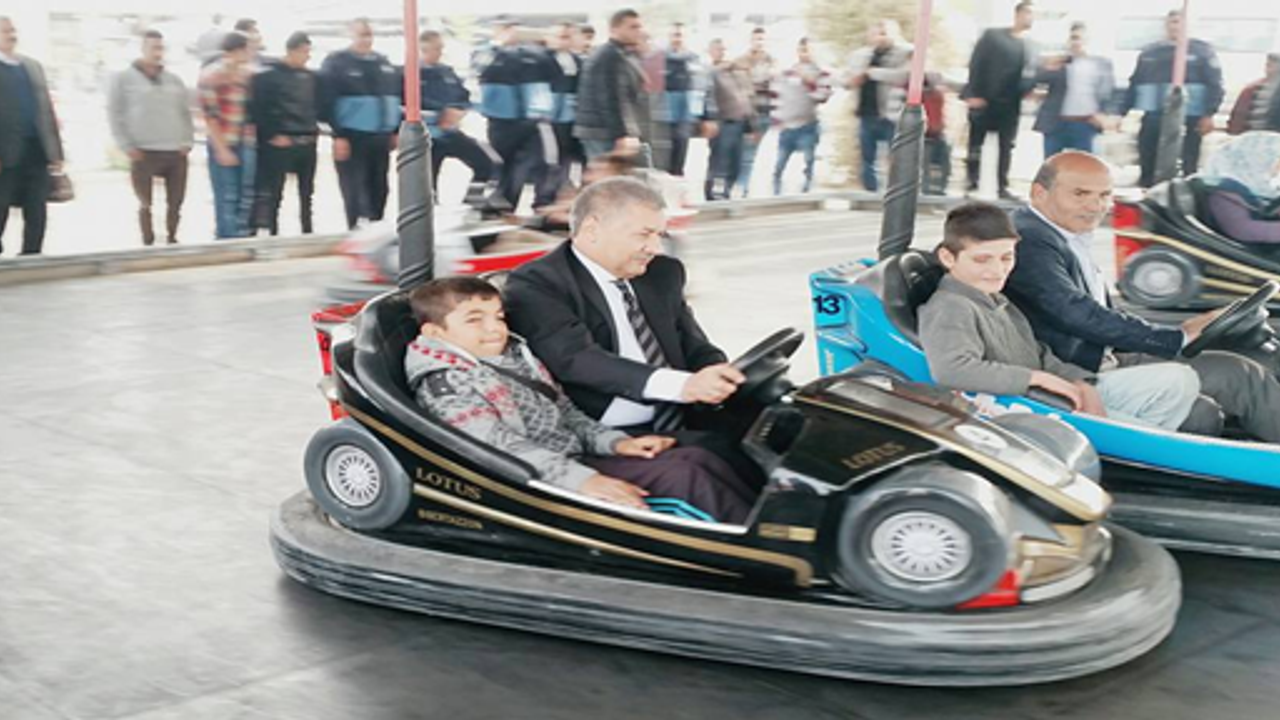 Şanlıurfa'nın Birecik ilçesini Belediye Başkanı Mehmet Faruk Pınarbaşı engelli çocuklar ile lunaparkta çarpışan araçlara bindirdi. Lunaparktaki oyuncaklara binip gönüllerince eğlenen çocuklar renkli görüntüler oluşturdu.
