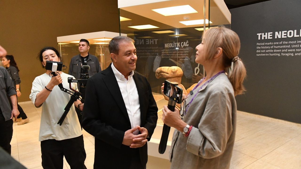 Tomoko Yamaguchi Şanlıurfa Müzesin gezerek müze ile ilgili Şanlıurfa Müze Müdürü Celal Uludağ'tan bilgi aldı.