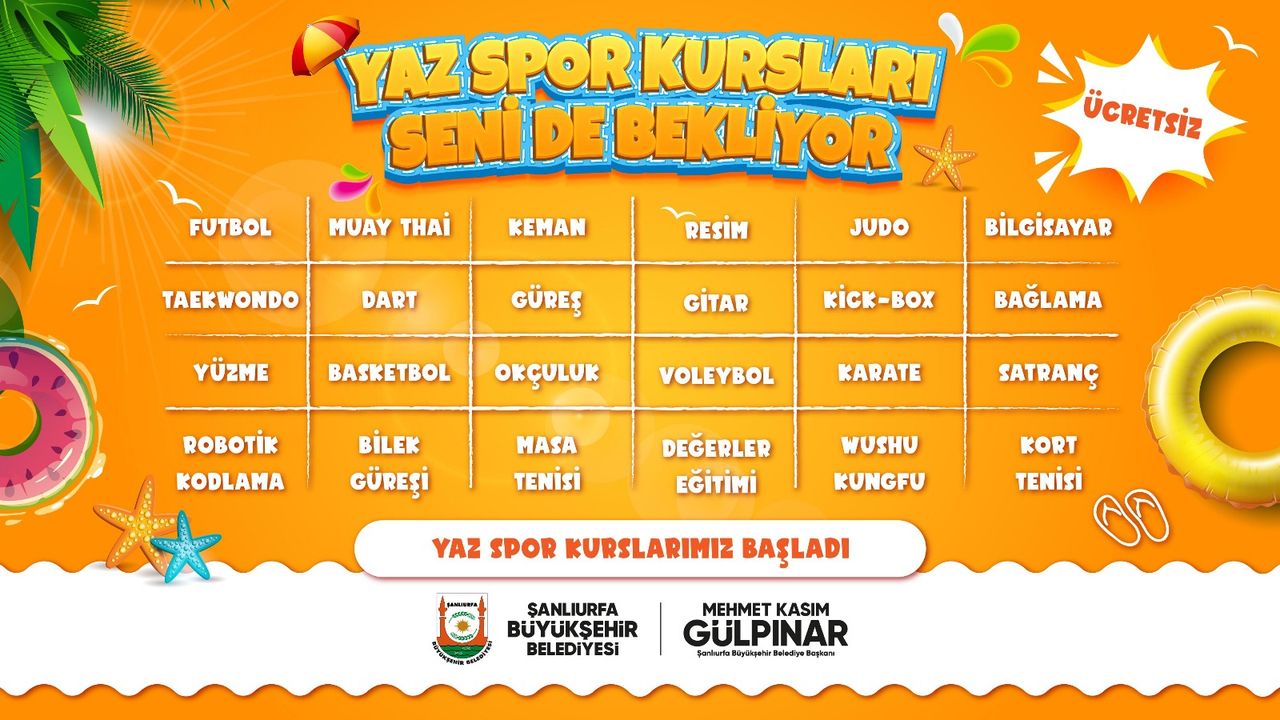 Şanlıurfa Büyükşehir Belediyesi, Türkiye’nin en genç nüfusuna sahip illerinden biri olan Şanlıurfa’da çocukların yaz tatilini verimli, güvenli ve eğlenceli geçirmesi amacıyla 2025 Yaz Spor ve Kültür Kursları’nı başlattı. 30 kültürel, 15 sportif branşta açılan ücretsiz kurslarla binlerce genç sporla, sanatla ve bilimle buluşuyor.