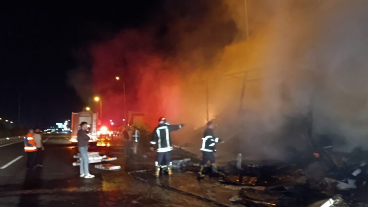 İtfaiye ekipleri ise hızla müdahale ederek yangını kontrol altına aldı. Yangında can kaybı yaşanmazken, yük olarak taşınan çok sayıda televizyonun zarar gördüğü ve maddi hasarın yüksek olduğu öğrenildi.