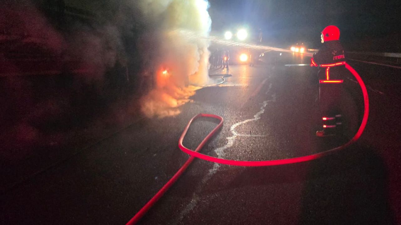 Lastiklerin tutuşmasıyla başlayan yangının kısa sürede büyüdü. Sürücünün 112 Acil Çağrı Merkezi’ne ihbarda bulunmasının ardından olay yerine itfaiye ve jandarma ekipleri yönlendirildi.