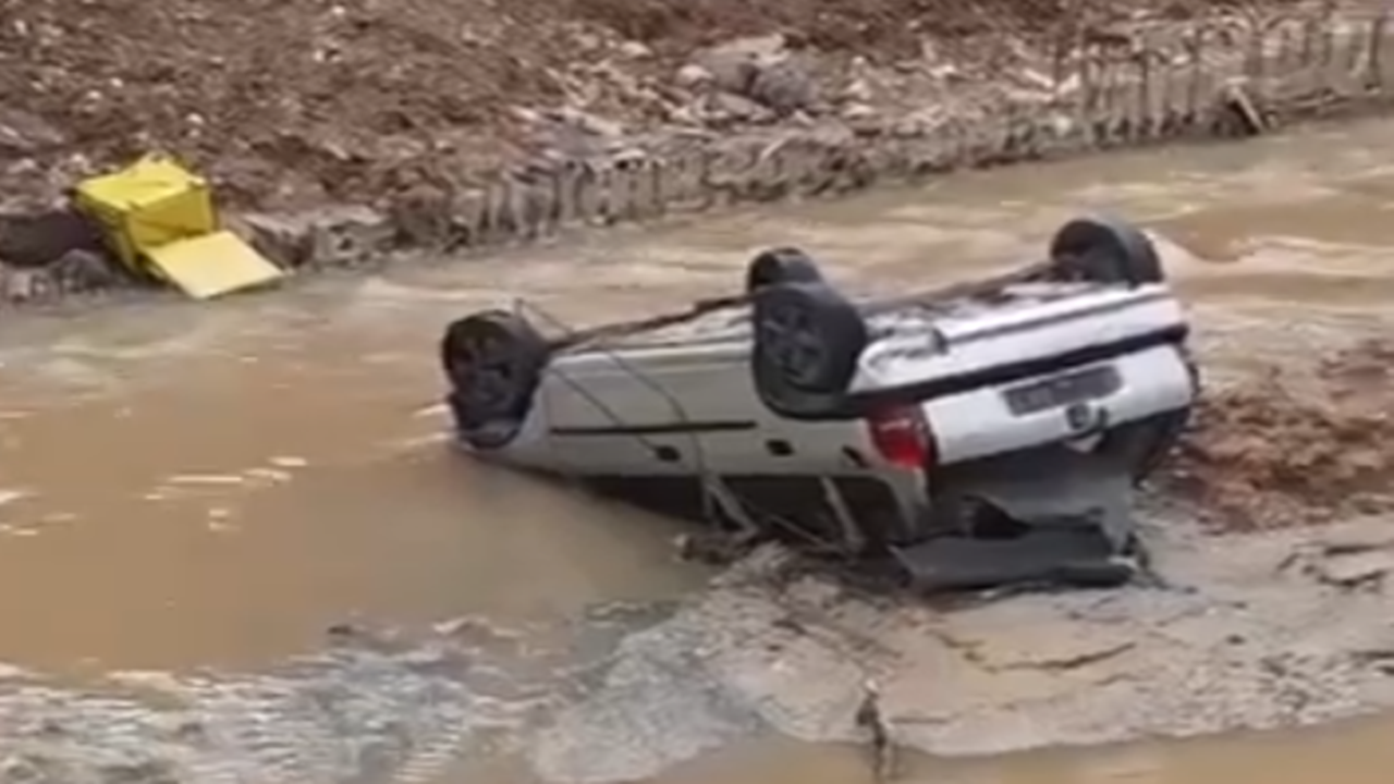 İddiaya göre, henüz sürücüsü ve plakası öğrenilemeyen park halindeki otomobil bilinmeyen bir nedenden dolayı dereye düştü.