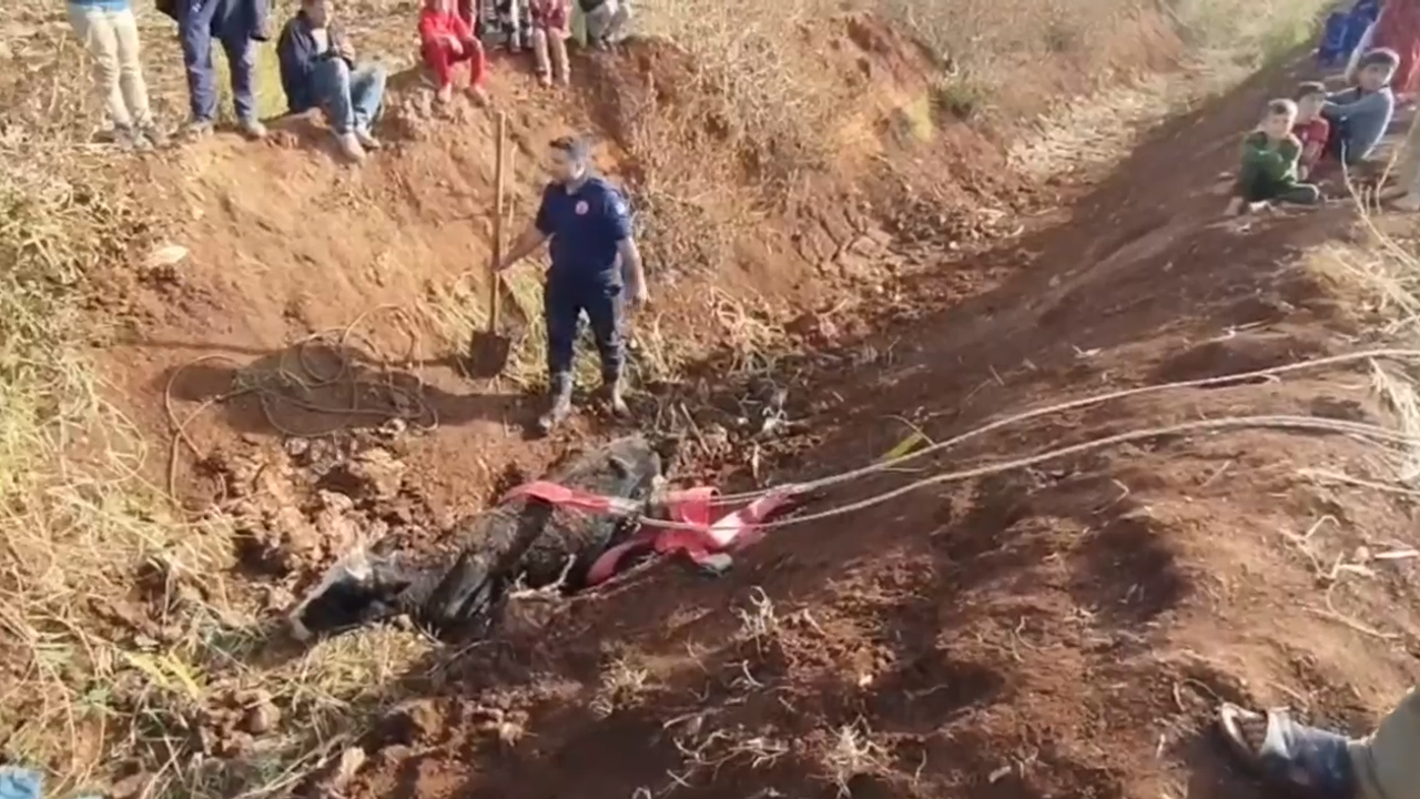 İhbar üzerine bölgeye giden ekipler, yaptıkları titiz çalışmaların ardından ineği kanaldan çıkarttı.