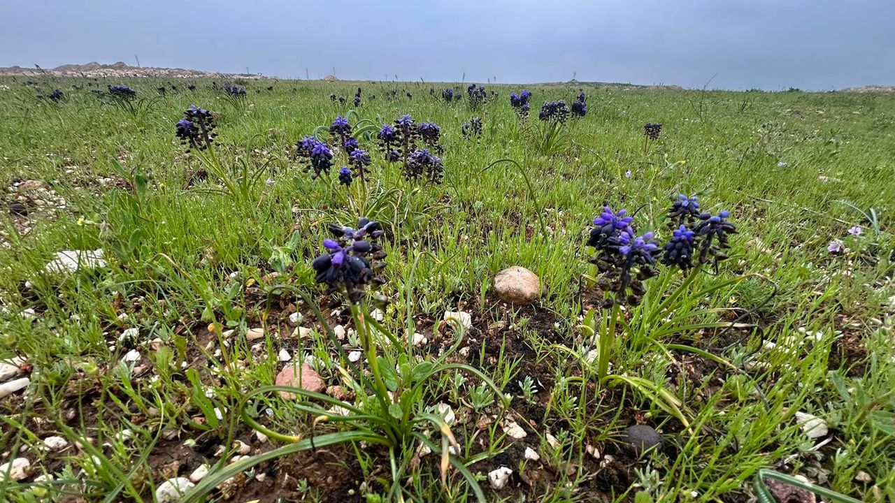 TİGEM arazisinde doğal olarak yetişen ve bilimsel adı Muscari neglectum olan bitki, baharla birlikte açarak tarlalara ayrı bir güzellik kattı. Halk arasında “Arap üzümü”, “dağ sümbülü” ve “müşkürüm” gibi farklı isimlerle de bilinen bu çiçek, hoş kokusuyla da dikkat çekiyor.