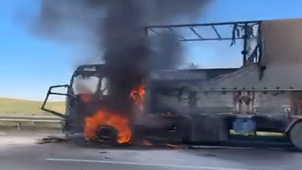 Edinilen bilgilere göre, Şanlıurfa-Gaziantep otoyolda seyir halindeki henüz sürücüsü ve plakası öğrenilmeyen bir kamyondan bir anda dumanlar yükseldi.