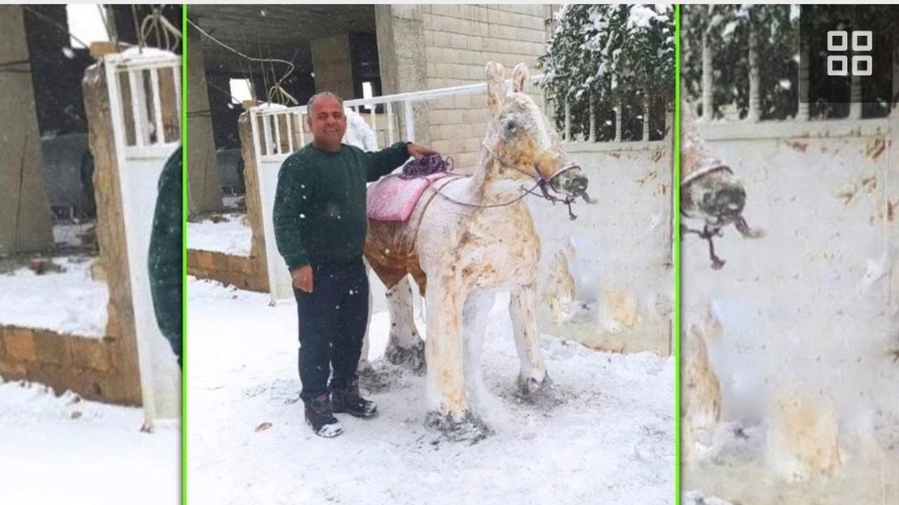 Halfeti’deki kar manzarasında, doğanın sunduğu beyaz örtüyle şekillendirilen bu eşek figürü, bölge halkının karla olan ilişkisini bir adım öteye taşıdı. Şahin'in figüründeki detaylar ve sanatsal dokunuşlar, hem karın güzelliğini hem de el emeğiyle yapılan eserlerin değerini bir kez daha gözler önüne serdi.