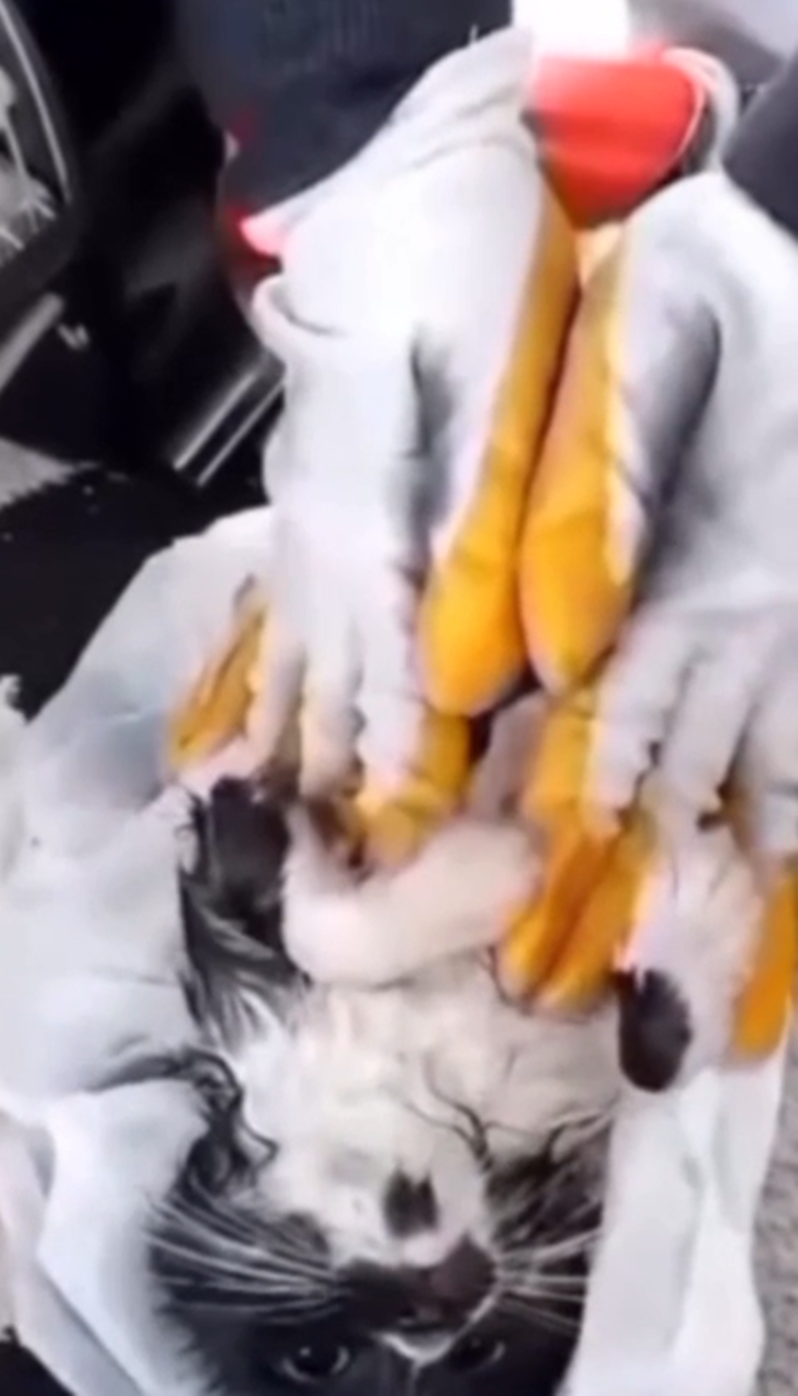 Boğulmak üzere olan minik kedinin kurtarılması, çevredeki vatandaşlar tarafından hem şaşkınlıkla hem de duyguyla izlendi. Kısa sürede nefes almaya başlayan kedi, dakikalar içinde toparlanarak kendine geldi.