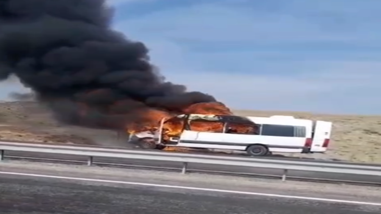 Minibüsü saran alevler, yolu tehlikeye soktu. Olay yerine gelen jandarma ve itfaiye ekipleri, çevrede güvenlik önlemleri alarak yangına müdahale etti.