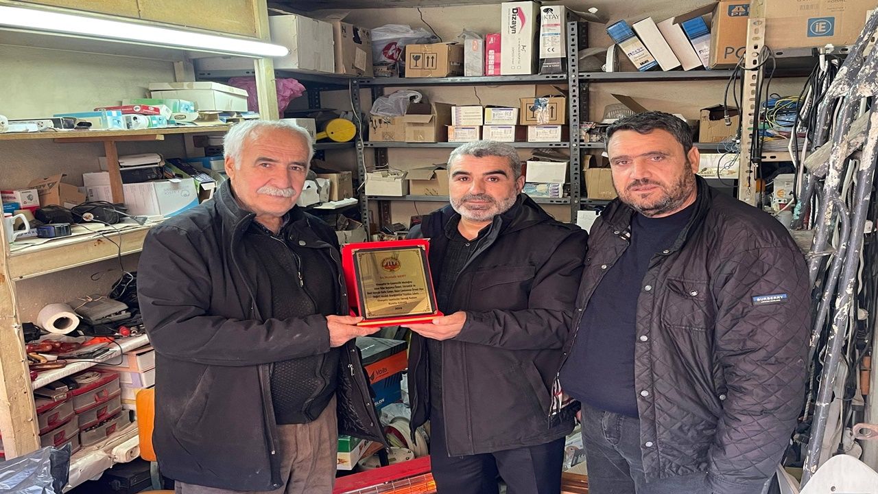 Gerçekleştirilen ziyarette, Viranşehir basınına yıllarca verdiği emek ve sunduğu hizmetlerden dolayı Mustafa Mert’e günün anısına plaket takdim edildi.