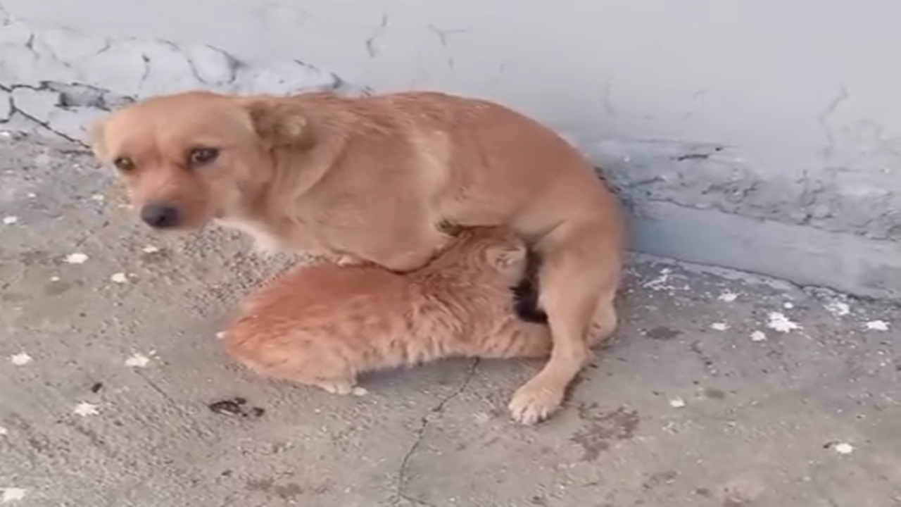 Köpek kediye yavrusu gibi görüp besledi anlara doğa olayında az rastlanan bir gelişme olarak yansıdı.