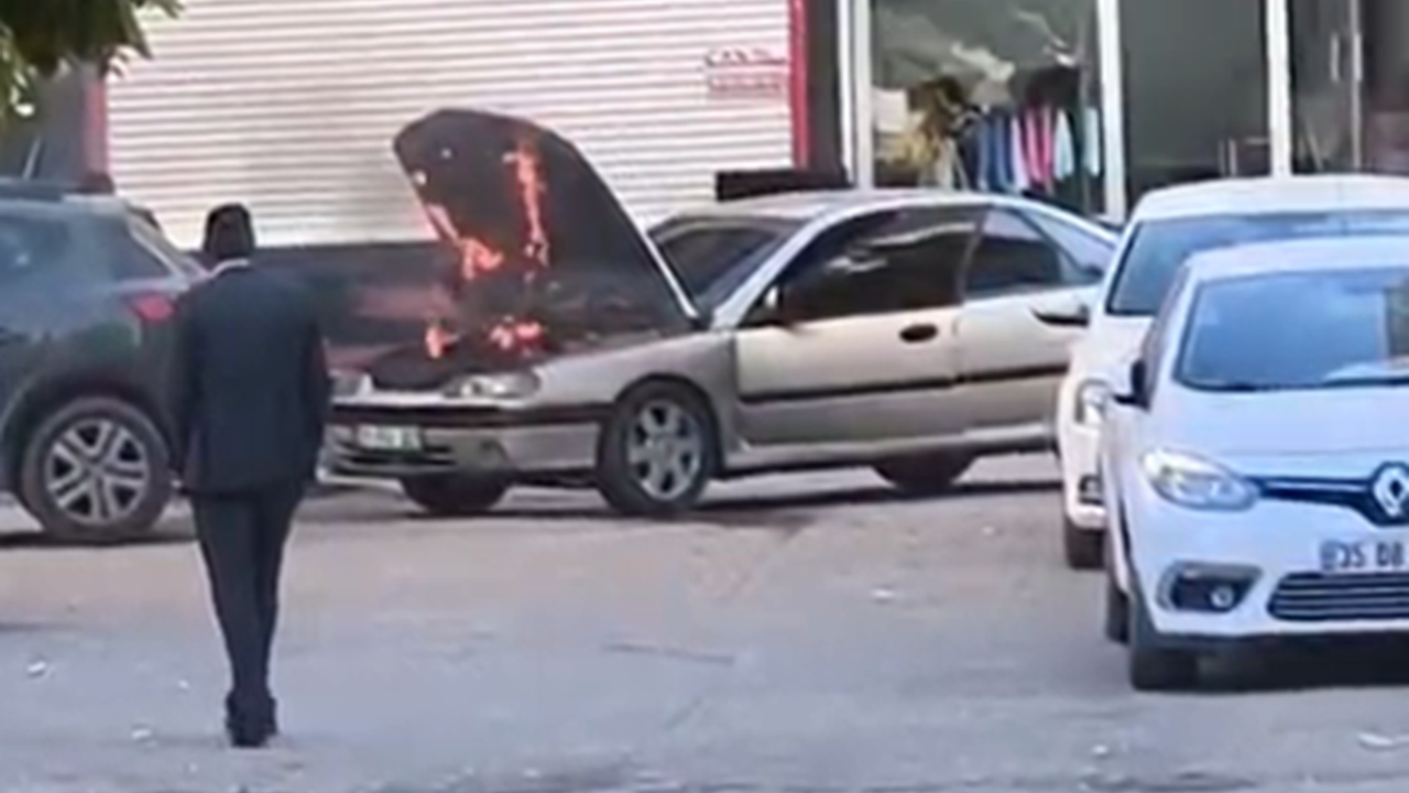 Araçta dumanların yükselmesi üzerine çevredeki vatandaşlar seferber olup, yangının büyümesi engelledi.