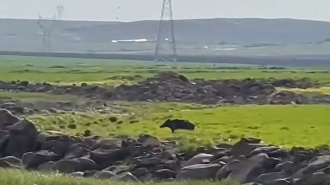 Kısa süreli şaşkınlık yaşayan çiftçi, sakinliğini koruyarak cep telefonuna sarıldı ve o anları görüntüledi. Doğal yaşamın nadir anlarından biri olarak kaydedilen görüntülerde, yaban domuzunun bir süre bölgede dolaştıktan sonra gözden kaybolduğu görüldü.